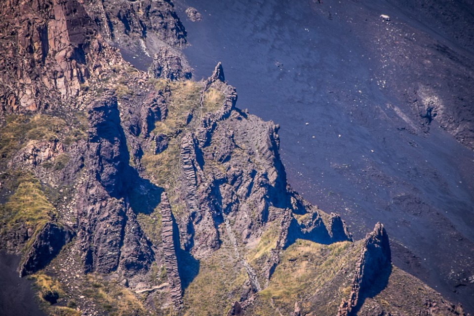 Fondazione M non ha molta disponibilità nel credere alle favole. Senza escluder nulla acriticamente e solo per dogma, tuttavia siamo maggiormente inclini a vedere un corrispondente spirituale. E, da questo punto di vista, i “palazzi” che intravediamo sulla vertiginosa posta alla sommità della scarpata della Valle del Bove, anche se la temperatura fosse di mille o centomila grandi – e dunque insopportabile per l’uomo – non meno sarebbe possibile albergo per esseri di ordine differente dall’umano e di cui si parlerà affrontando il tema delle origini della dottrina dei Superiori Sconosciuti.