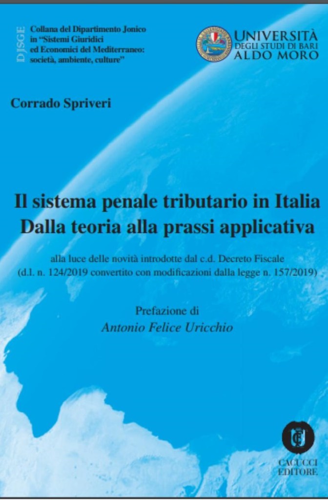 Corrado Spriveri, con il suo volume pubblicato da Cacucci, offre un’eccellente visione e analisi di un dominio del diritto poco frequentato e di difficile comprensione ai non addetti ai lavori. Il volume, dal titolo “Il Sistema Penale Tributario in Italia. Dalla teoria alla prassi applicativa. Alla luce del cd Decreto Fiscale (d.l. n.124/2019 convertito con modificazioni dalla legge n. 157/2019)”, si propone di esporre la materia del diritto penale tributario, sin dalle sue origini, sotto l’aspetto sostanziale, evidenziando la peculiarità dei principi generali in esso contenuti, alla luce delle rilevanti e sostanziali modifiche introdotte dal legislatore con il d.l. n.124/2019 convertito con modificazioni dalla legge n.157/2019, che hanno ridefinito l’intera disciplina prevista dal decreto legislativo n. 74/2000.