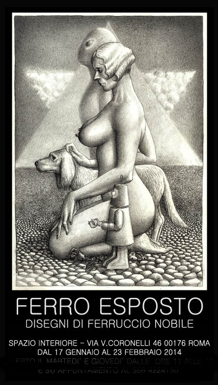 Una mostra non troppo lontana nel tempo, la personale tenuta presso SPAZIO INTERIORE ART GALLERY, Roma 2014, ne introduceva il lavoro dichiarando: “I disegni di Ferruccio Nobile mostrano quel che non vogliamo vedere ma che tanto andiamo cercando, in una lotta incessante con la nostra ombra che ci spinge e ci trattiene senza soluzione di continuità. Ciò che di più oscuro e inammissibile coviamo dentro di noi deve essere svelato e affrontato per poi essere lasciato andare. Le atmosfere surreali, che riecheggiano Austin Osman Spare, e le costruzioni metafisiche sull’orlo di un paese delle meraviglie post-Alice ormai trasandato e in rovina, ci coinvolgono in un viaggio transdimensionale in cui possiamo davvero liberarci dal tempo e dallo spazio e ritrovarci finalmente soli con noi stessi.”