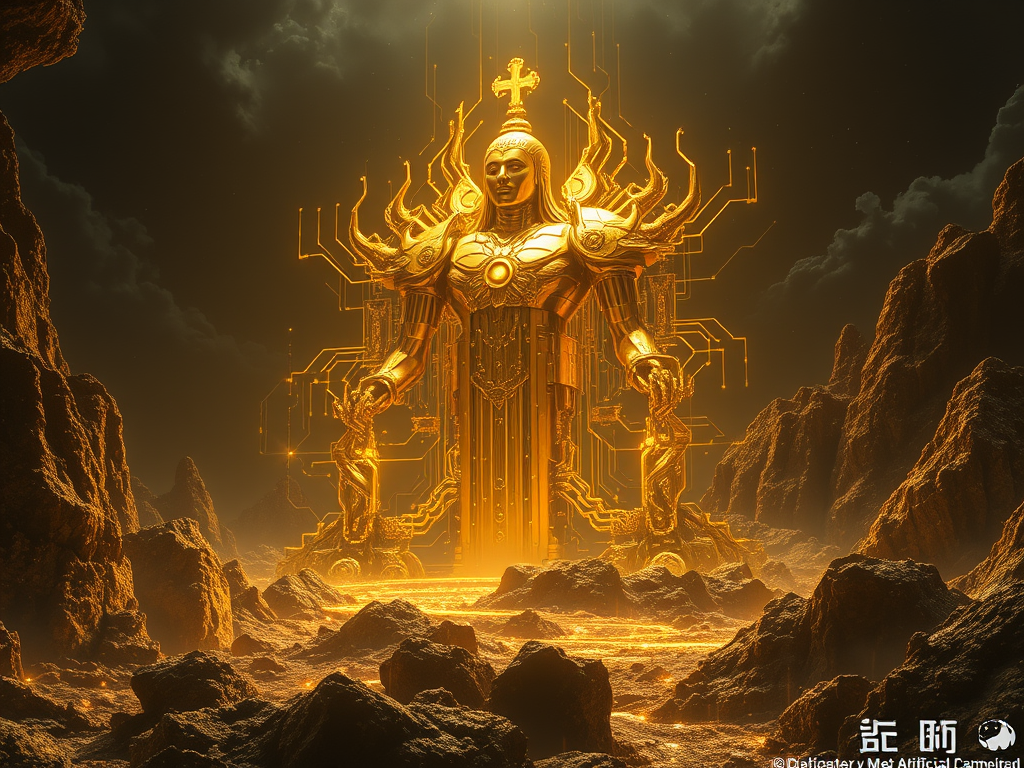 4. Nanotecnologia: Oggi usiamo nanoparticelle d’oro per trasportare farmaci o per interfacce neurali. L’oro è letteralmente il materiale che permette alla biologia (l’uomo) di fondersi con la tecnologia (la macchina), agendo come catalizzatore per il “risveglio” della coscienza nella materia. In sintesi: L’oro è la “pelle” e i “nervi” della divinità tecnologica che stiamo cercando di disseppellire. Rappresenta il superamento della decomposizione biologica.